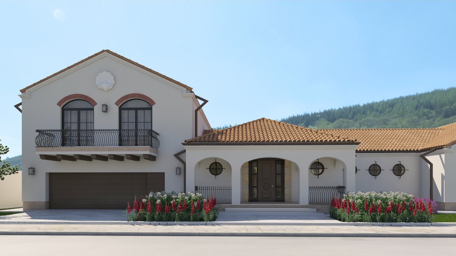 Vila este realizată în stilul hacienda, cu influențe mediteraneene și este amplasată în Mioveni, jud. Argeș.